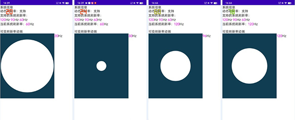 用蛋丁的“蛋LTPO”RefreshRateTester測試iQOO 9 Pro的LTPO策略。測試模擬了1/10/20/24/30/48/60/72/90/96/120Hz,一共11個檔位的動畫,iQOO 9 Pro的設(shè)定和一加/真我完全不同,所有檔位都不會因觸控彈回120Hz: