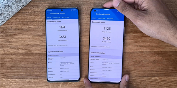 GeekBench跑分測試結(jié)果,小米12 Pro的單核跑分為1174分,多核跑分為3631分。小米11 Ultra的單核跑分為1125分,多核跑分為3420分。