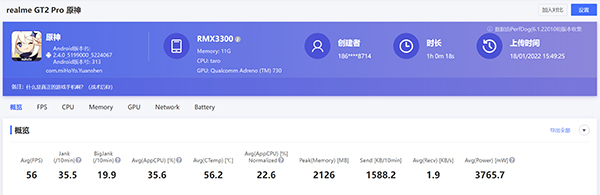 在實際測試中,《王者榮耀》因為不太吃性能的緣故,所以跑120Hz是完全沒有壓力的。而在《原神》測試中,開啟GT模式后在室溫23度左右的環(huán)境下,使用WiFi網(wǎng)絡(luò),1個小時的時間能得到多好的表現(xiàn)呢?