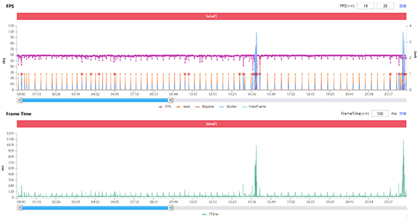 而在實際測試中,25分鐘之內(nèi)的成績真我GT2 Pro都非常穩(wěn)定。在幀率上,真我GT2 Pro可以維持55-60幀,而在半個小時后由于散熱以及高功耗的緣故游戲幀數(shù)就開始波動了,不過波動也持續(xù)穩(wěn)定在50幀左右。在58分鐘的時候,掉到了40幀左右,2分鐘之后馬上又回到了55幀以上。