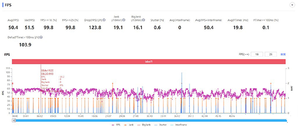 和其他品牌的手機(jī)比起來,摩托羅拉edge X30在這款游戲中的幀率波動(dòng)更明顯,在游戲跑圖或戰(zhàn)斗過程中會(huì)有可感知的的突然幀率下降,在游戲進(jìn)行半小時(shí)之后幀率一度在40fps徘徊了一陣子,隨后又立即上升。