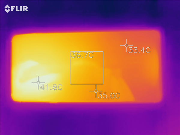 而在《原神》的測試中,摩托羅拉edge X30在玩了30分鐘之后,機(jī)身的發(fā)熱有些厲害,握持感不是很好,游戲過程中并沒有出現(xiàn)鎖幀的情況,卡頓次數(shù)不多體驗(yàn)比較流暢。但我們測得機(jī)身正面最高溫度為41.8℃,而機(jī)身背面最高溫度則為42.6℃。