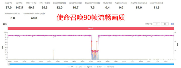 黑鯊4S Pro在《使命召喚手游》中提供90幀極限幀率模式,在該模式下連續(xù)兩局游戲平均幀數(shù)87幀,這個幀數(shù)是計算局間的排隊匹配時間的,在游戲場景的幀率非常穩(wěn)定。兩局游戲后測溫,手機正面最高溫度37.6度,背面最高溫度37.3度,同樣沒有體感上的發(fā)熱情況。