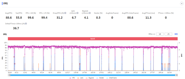 在長(zhǎng)達(dá)5.5小時(shí)的游戲測(cè)試后,一加10 Pro的電量終于耗光了,而這段時(shí)間里的幀率表現(xiàn)如下圖所示: