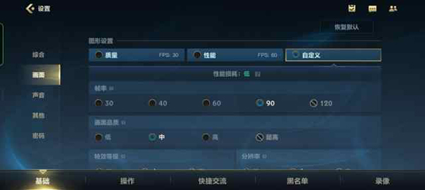 我們同樣打開了一加10 Pro的電競模式與極限穩(wěn)幀的功能,在英雄聯(lián)盟中選擇90幀模式,并將其他畫面選項分別設置為:畫質:中、特效等級:中、分辨率:中、模型背景虛化:關、角色描邊:關。