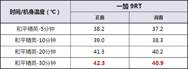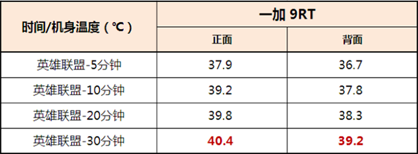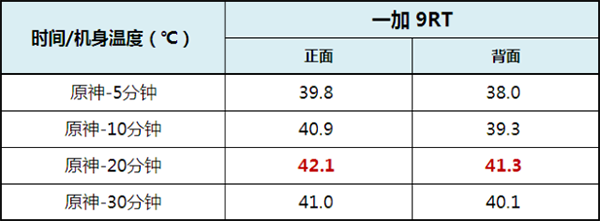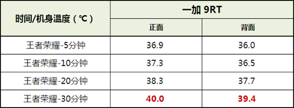 在兩款MOBA類游戲——《王者榮耀》和《和平精英》中,一加9RT可謂是駕輕就熟,機(jī)身正反面最高溫度基本維持在40度以下,盡管在測試末期出現(xiàn)了稍微超出40度的情況,但一加9RT的這一散熱成績已經(jīng)足夠優(yōu)秀。