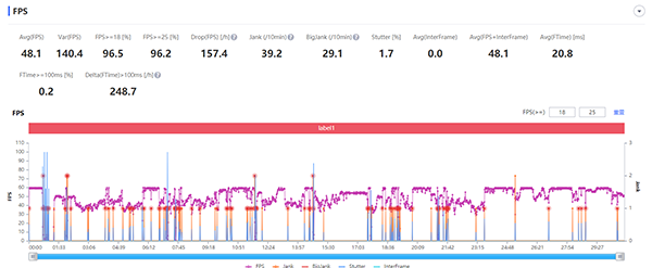 首先進(jìn)行測(cè)試的是號(hào)稱性能殺手的原神,最高畫質(zhì)下半小時(shí)平均幀數(shù)為48.1幀,在整體的游戲過(guò)程中,保持了華為一直以來(lái)的策略,并沒(méi)有出現(xiàn)一些其他手機(jī)的鎖幀現(xiàn)象,我們平時(shí)日常的環(huán)境下也不一定會(huì)直接開(kāi)到最高畫質(zhì),所以日常的游戲中體驗(yàn)肯定要更加流暢。半小時(shí)游戲過(guò)后機(jī)身溫度正面42.9℃,背面41℃,在這么強(qiáng)悍的性能表現(xiàn)下還能維持這樣的溫度,真的是出乎了淺河的意料。CPU則是在前十分鐘火力全開(kāi),十分鐘后慢慢的回到正常水準(zhǔn),協(xié)助控溫。