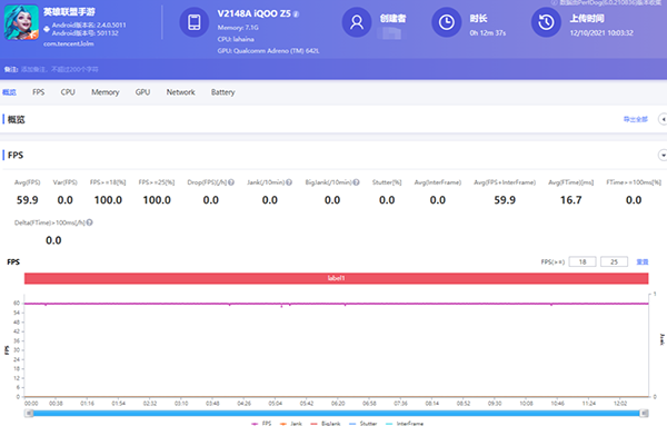 實際的游戲測試中,我用它運行了當下大火的《英雄聯(lián)盟手游》,全部設置保持默認的情況下,iQOO Z5的表現(xiàn)非常流暢,平均FPS達到了59.9幀,基本全程保持了接近滿幀的游戲體驗。而且得益于驍龍778G出色的功耗控制,以及超大面積的散熱配置,iQOO Z5整機在長時間運行游戲后,也保持了足夠的“冷靜”,局部最高溫度為37°,完全沒有出現(xiàn)因溫過高而導致性能下降的現(xiàn)象。
