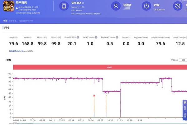 《和平精英》90幀極限模式下,平均幀率79.6幀,幀率波動很大,溫度過高后,幀率鎖60幀。不過,在《王者榮耀》這款國民游戲中,表現(xiàn)就好得多了。平均幀率89幀,幀率最大波動3.4幀,表現(xiàn)很穩(wěn)定。同時X70 Pro+也是第一批支持120幀《王者榮耀》的機型。