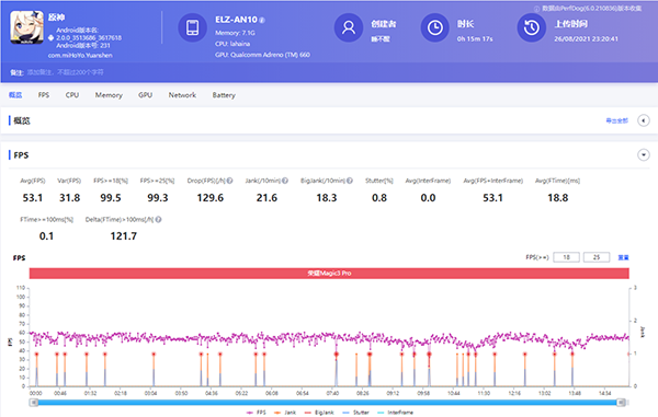 我也測(cè)試了原神,將所有畫(huà)質(zhì)調(diào)到最高之后,榮耀Magic3 Pro的平均幀率基本維持在53幀左右,長(zhǎng)時(shí)間運(yùn)行也并沒(méi)有出現(xiàn)掉幀鎖幀的情況,另外在日常使用中也基本上沒(méi)有遇到過(guò)bug,系統(tǒng)還挺穩(wěn)定的。