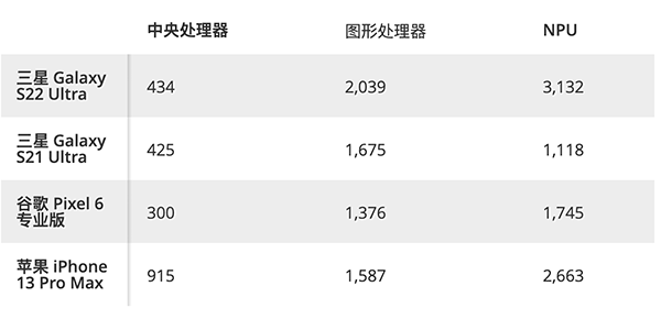 S22 Ultra NPU 性能也幾乎是S21 Ultra機型的3倍。