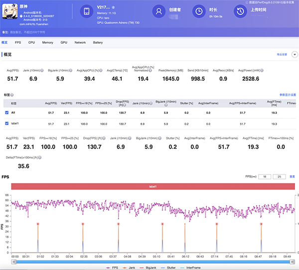 得益于自身硬件配置加持,游戲體驗方面iQOO 9 Pro表現(xiàn)得“十拿九穩(wěn)”,面對《原神》這類游戲能夠做到穩(wěn)定可控。雖然從幀率圖片上來看波動較為明顯,但幀率整體運(yùn)行算是比較平穩(wěn)化。具體到游戲場景中,人物跑圖、釋放技能時畫面流暢穩(wěn)定,只有在進(jìn)入副本或者開啟轉(zhuǎn)場動畫時,畫面才會出現(xiàn)稍許卡頓。