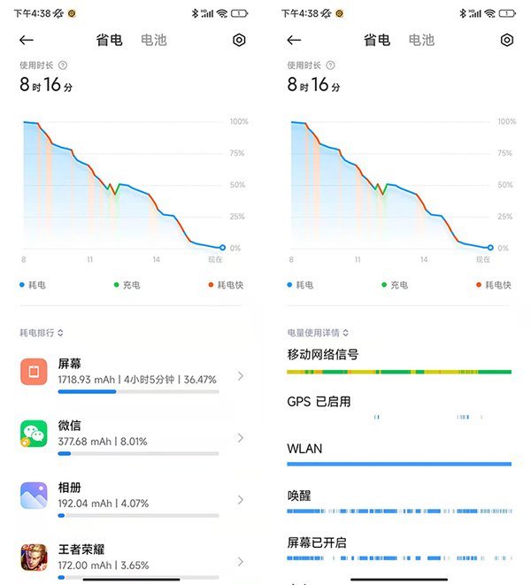 開啟5G和Wi-Fi,從8時(shí)30分100%電量出門,玩游戲、聊微信、看視頻、刷微博、拍照片,并進(jìn)行了多次跑分測(cè)試,到16時(shí)27分電量掉到了1%(并沒有關(guān)機(jī)),堅(jiān)持了8小時(shí)左右。