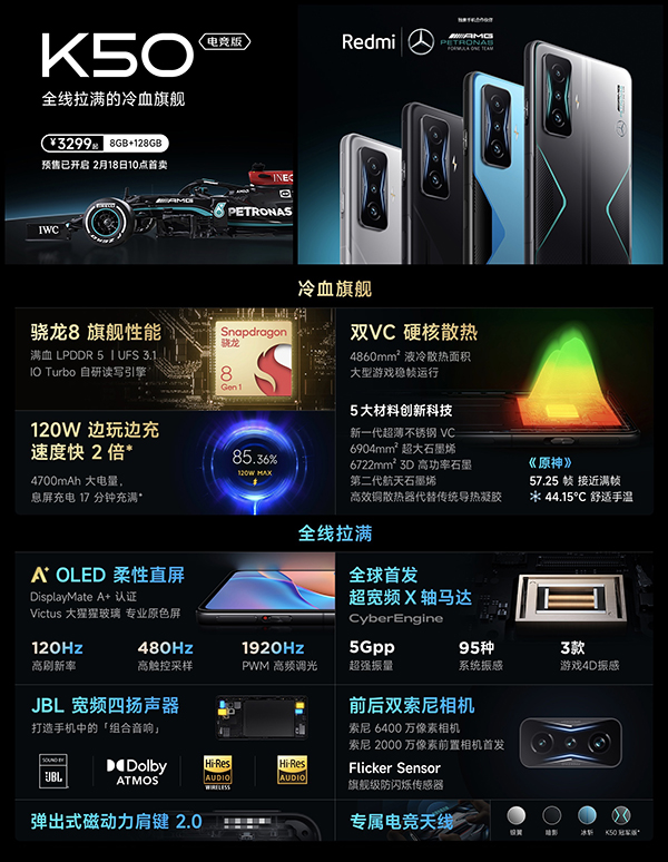最后紅米K50電競(jìng)頂配還有一款“冠軍版”,其實(shí)就是與梅賽德斯AMG F1車隊(duì)聯(lián)名款,后蓋設(shè)計(jì)看起來會(huì)更具科技感,并且還有車標(biāo)logo,限量10000臺(tái)。