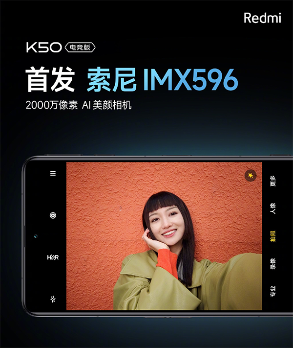現(xiàn)在手機自拍功能在日常生活中應用的也是比較頻繁的,而在這個前置自拍方面,咱們的這個紅米K50電競版前置首發(fā)索尼IMX596傳感器的2000萬像素美顏自拍,不管怎么拍都能拍出精彩大片,尤其是錄像、拍照、人像模式均支持AI美顏功能。