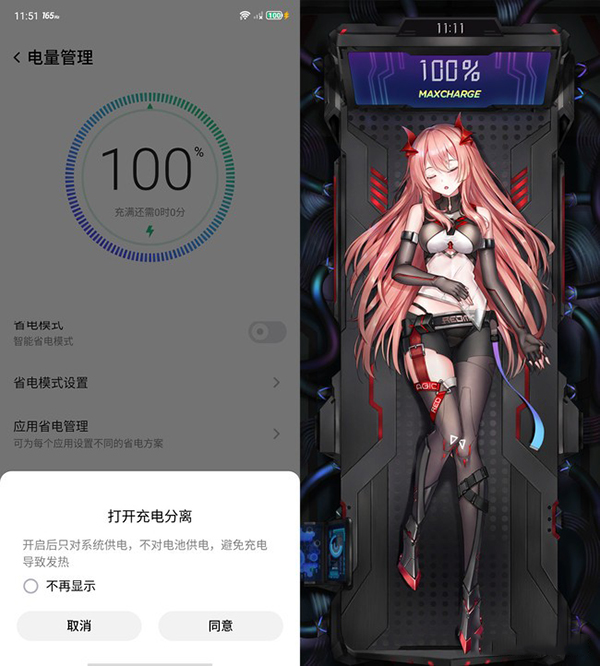 如果喜歡邊玩邊充的話還可以開啟紅魔7的充電分離功能,這項功能開啟后,手機充電器將會繞過電池直接給系統(tǒng)供電,減少充電帶來的發(fā)熱問題和電池損耗。