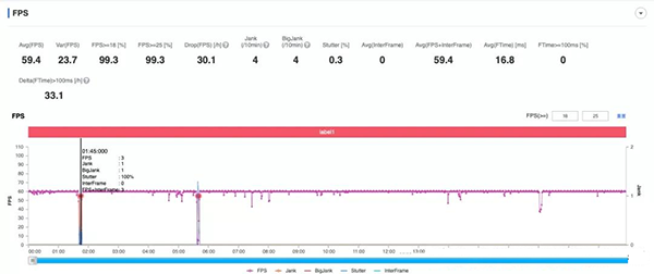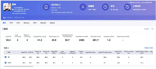 看這幀數(shù)圖,紅魔可謂讓這顆驍龍8 Gen1撒開腿來跑?!阜€(wěn)如直線」絲毫沒有夸張的成分,平均幀數(shù)59.4幀,中間僅發(fā)生了3次較為明顯的幀率抖動(dòng),其余時(shí)間那可都是「波瀾不驚」,并且一直保持著穩(wěn)定的性能輸出。