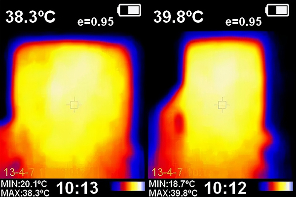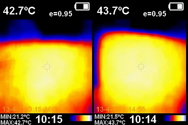 (半小時(shí)《王者榮耀》手機(jī)背面(左)和正面(右)溫度)