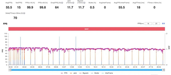 更難能可貴的是,持續(xù)半小時(shí)后的幀率情況,和剛開局時(shí)差別不大,不會(huì)給人一種「啊?怎么越玩越卡」的感覺。