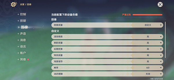 接下來是對(duì)性能要求很高的《原神》。游戲進(jìn)行前,小編開啟全高畫質(zhì):