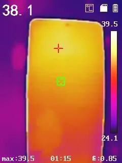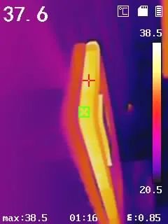 機(jī)身發(fā)熱在上半部分,在7分鐘之后,發(fā)熱感知明顯有微微燙手的感覺(jué),相對(duì)的散熱速度也快