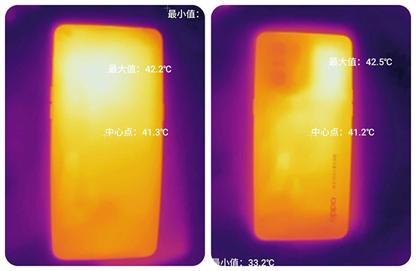 所以在30分鐘《原神》游戲中,OPPO Find X5 Pro的機(jī)身最高溫度在42°C左右(室溫20°C左右),溫控表現(xiàn)非常喜人,機(jī)身雖也熱,但絕對沒有友商“燙手”的那種夸張程度。