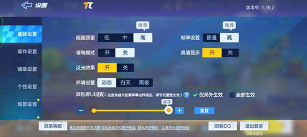 《跑跑卡丁車》手游版由于節(jié)奏較快,需要多命玩家在較窄的賽道內(nèi)通常競技,相互碰撞、加速需要高硬件支持,我們在畫面設(shè)置中選擇高畫質(zhì)、高幀率、高清顯示以及泛光效果。