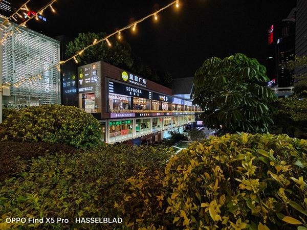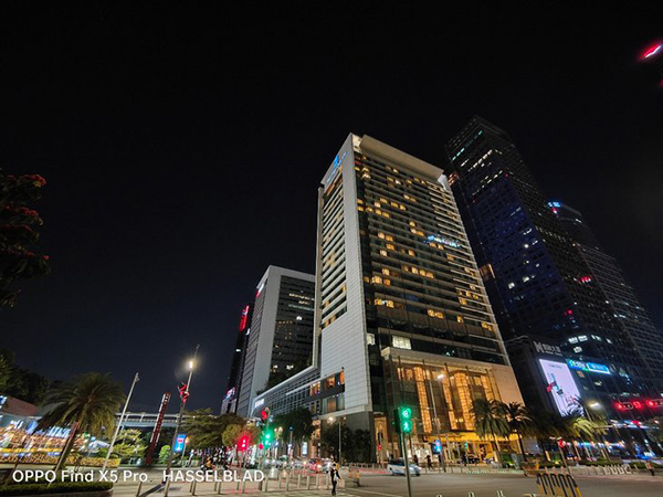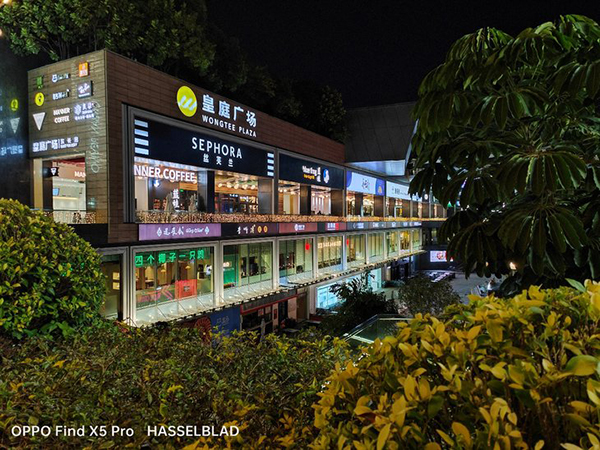 在夜間拍攝上,默認模式下應該已經(jīng)加入了夜景算法,OPPO Find X5 Pro主攝在畫面整體亮度、暗部細節(jié)、對高光壓制、純凈度等方面的表現(xiàn)讓人滿意,還支持夜景模式,復雜的夜間場景也能很容易拍出一張質(zhì)感很好的照片,超廣角夜間成像質(zhì)量也接近主攝。