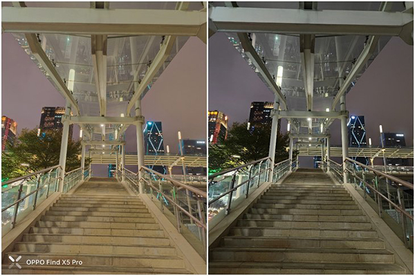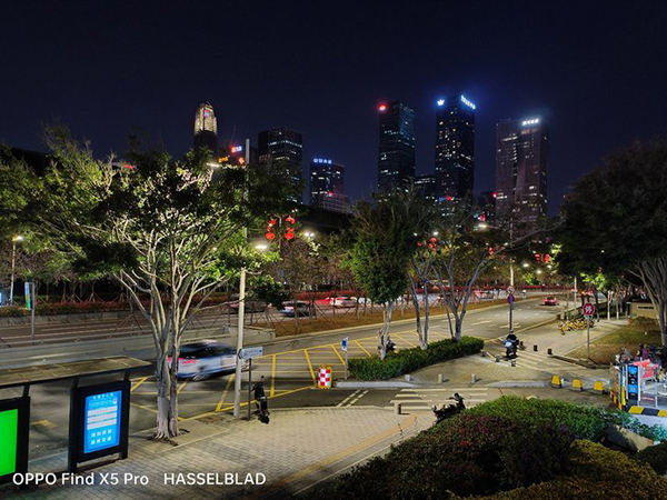 在夜拍場景,OPPO Find X5 Pro對色彩的還原也比較準確。OPPO Find X5 Pro的樣張更接近實際環(huán)境色彩,右邊對比的安卓旗艦手機白平衡偏冷色調(diào)。值得一提的是,無論是默認或者夜景模式拍攝夜景照片,大部分場景的成像速度都非??欤恍枰却荛L時間。