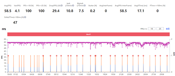 經(jīng)過PerfDog性能測試分析,努比亞Z40 Pro運行《王者榮耀》的平均幀率達到了59.7fps。幀率穩(wěn)定,游戲體驗出色。