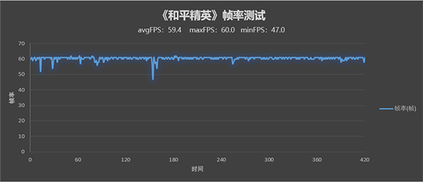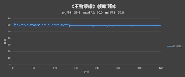 《王者榮耀》目前支持60幀模式,最高畫質(zhì)下平均幀率59.4 FPS。
