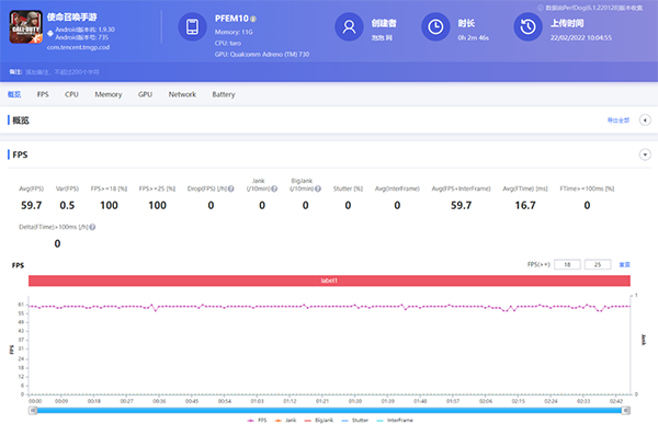 《使命召喚手游》PerfDog軟件幀率測(cè)試結(jié)果