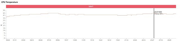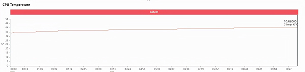 同時我們留意到了測試中三款游戲的CPU溫度的變化曲線,在半小時的《王者榮耀》測試中,CPU的最高溫度只有40℃;而在《原神》以及《和平精英》的測試中,CPU的最高溫度也只有45℃。
