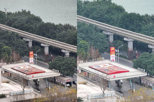但必須要說的是,客觀上也要看到這種焦段的對于成像而言實(shí)際意義并不大。從衡量一張照片好壞的角度來看,多數(shù)人恐怕難以接受這樣的畫質(zhì)。但如果是生活中借助這種望遠(yuǎn)鏡級(jí)別的功能去看清遠(yuǎn)處的一些字體,識(shí)別一些物體,也挺實(shí)用。