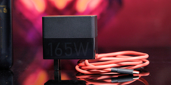 再來說說這個充電器,165W應(yīng)該是目前國內(nèi)手機(jī)廠商送的最大功率的充電器了,比之前傳音的那個160瓦都還要大,但是本身的體積并不大,相比于游戲本類似功率的充電器顯得十分小巧。