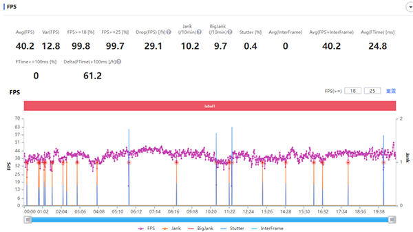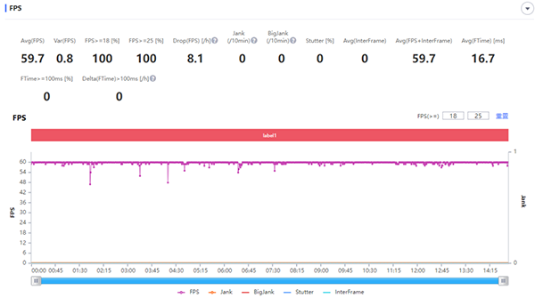 在《王者榮耀》中將畫面設(shè)置為“高幀率+超高分辨率”(能開啟的最高畫質(zhì)),真我V25可以保持全程59.7fps的平均幀率,游戲體驗流暢。