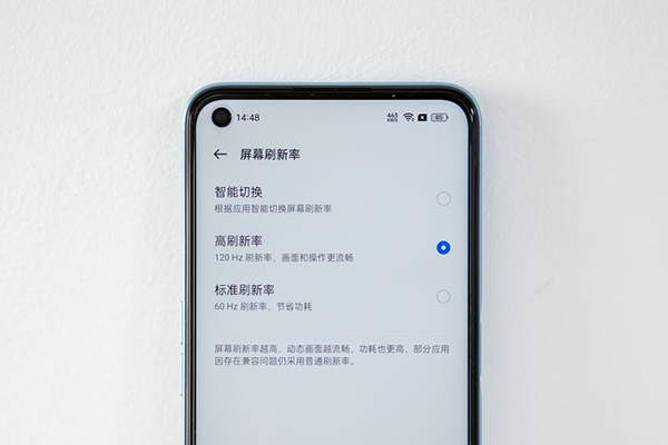 這塊屏幕可說的點(diǎn)有兩個(gè):其一是顯示細(xì)膩程度要優(yōu)于一些非旗艦的1080POLED屏;另外,它做了6檔(30Hz/48Hz/50Hz/60Hz/90Hz/120Hz)刷新率智能調(diào)節(jié),能更好平衡功耗和使用流暢度。