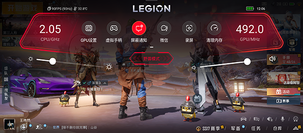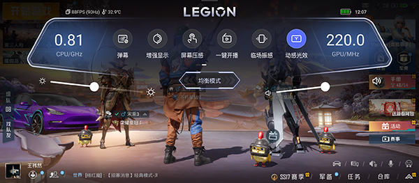 在拯救者助手的頂部,我們可以看到實(shí)時(shí)的游戲幀率信息、溫度信息、設(shè)備電量信息以及時(shí)間。