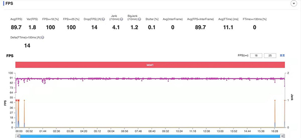 《和平精英》最高支持90幀,平均幀率為89.7fps。拋開開局和結(jié)束時(shí)加載帶來的幀率波動(dòng),過程中運(yùn)行足夠平穩(wěn)。