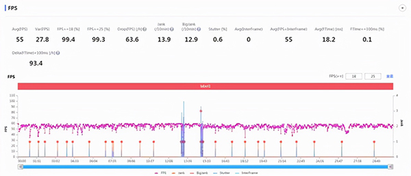 (上:30分鐘和平精英實測幀率,下:30分鐘王者榮耀實測幀率)
