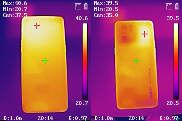 在30分鐘《原神》測試結束后,或許是后期手機性能進行了一定限制的緣故,所以溫度并不是很高,正面最高40.6℃,背面最高39.5℃,在冬天的室溫環(huán)境中握持手感異常舒適。