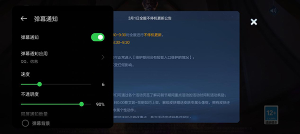 針對游戲時來通知,可以根據(jù)自己的需要選擇彈幕通知與懸浮窗模式,彈幕通知能夠更快幫你掌握消息內(nèi)容,并且還不用擔心橫幅遮擋;如果需要在游戲中實時回復(fù)消息,可以關(guān)閉彈幕通知使用懸浮窗。