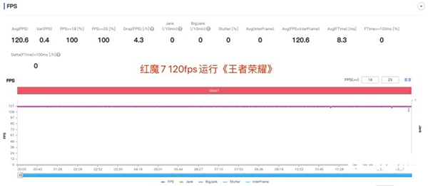 首先來看國民MOBA手游王者榮耀,在室溫25℃情況下進(jìn)行測試,在全開畫質(zhì)下,紅魔7可以做到全程無卡頓、無掉幀,幀率始終穩(wěn)定在120fps。