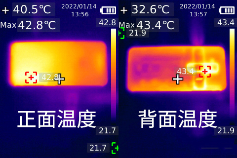 在發(fā)熱方面,運(yùn)行半小時(shí)《王者榮耀》后,紅魔7正面最高溫度40.5度,背面最高溫度42.2度。在手持區(qū)域中的溫度要更低,體感上表現(xiàn)溫?zé)?,不影響操控性?