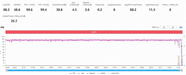 可以看到,Redmi K50電競版和K40游玩三十分鐘《原神》,平均幀率幾乎一樣,只差了一幀。兩款手機在面對大型戰(zhàn)斗時均有掉幀的情況發(fā)生,但總體控熱方面K50還是稍占優(yōu)勢。再來看看對配置要求不高的《和平精英》,游戲開啟90FPS模式。