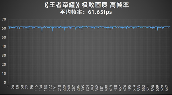 游戲?qū)崪y我們使用了熱門游戲《王者榮耀》,真我V25的幀率上限目前是60幀。把電競模式、極限穩(wěn)幀這種該開的功能都開啟的情況下進(jìn)行測試,測得該機的游戲全程平均幀率為61.65幀,性能溢出還是比較明顯的。圖形大家也看到了,整體比較穩(wěn)健,后期團(tuán)戰(zhàn)也沒有使得幀率圖形出現(xiàn)斷崖式下降的情況。實際體驗與預(yù)期一樣,在比較保守的幀率上限下,熱門游戲的表現(xiàn)還是可以保證的,再硬核一點的《原神》之類的游戲建議就別整了,除非你不在乎最低預(yù)設(shè)和可能會掉光的幀率,或者你只是想上去領(lǐng)領(lǐng)東西什么的。