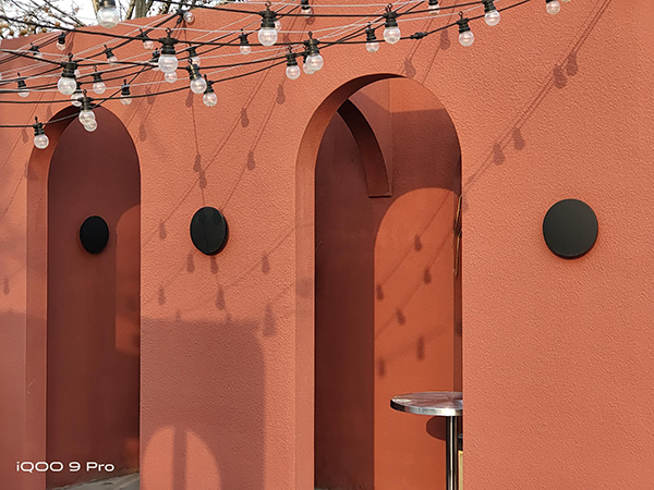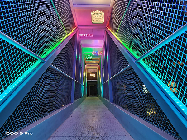 iQOO 9 Pro賽道版的超廣角魚眼鏡頭也達(dá)到了主攝級(jí),因?yàn)橐曇敖嵌茸畲罂蛇_(dá)150°,因此能拍出正常視角下所看不到的景觀,乍看之下會(huì)有一種新奇感,比如過道樣張中鏡頭幾乎將過道四面都容納進(jìn)了畫面,構(gòu)圖相當(dāng)漂亮。不過超廣角魚眼鏡頭在色彩上比主攝寡淡一些,希望iQOO以后能通過OTA升級(jí)再次調(diào)校一下。
