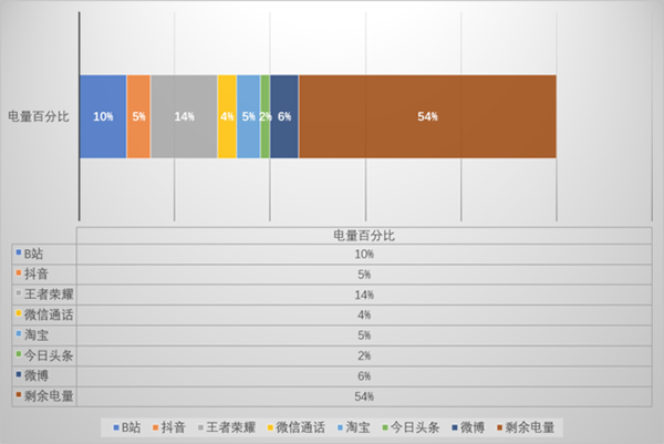 B站和抖音是目前年輕人最常用的長(zhǎng)視頻及短視頻平臺(tái),B站1080P視頻在線播放一小時(shí),消耗電量10%,抖音播放半小時(shí)視頻,消耗電量5%。將王者榮耀的幀率設(shè)置為高、分辨率為高、相機(jī)高度標(biāo)準(zhǔn)、抗鋸齒開(kāi)啟、動(dòng)態(tài)幀率關(guān)閉、HDR特效默認(rèn)。運(yùn)行一小時(shí)后,消耗電量14%。微信語(yǔ)音通話半小時(shí),消耗電量4%。