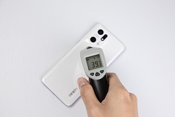 然后是《和平精英》,開啟流暢畫質(zhì)、60幀幀率模式,手機(jī)開啟電競模式。一局游下來,OPPO Find X5 Pro天璣版給我最深的印象就是穩(wěn),即使是剛槍、駕駛載具等場景,畫面幀率依舊穩(wěn)定,整局游戲的幀率能夠保持在88-90fps之間。然后我用測溫槍測了一下它的機(jī)身溫度,機(jī)身最高溫為39.3度,相較多數(shù)驍龍8 Gen1旗艦而言,其在溫控方面的表現(xiàn)出色。