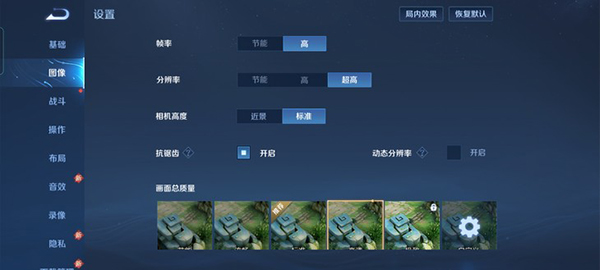 接下來(lái)是近段時(shí)間大熱的《英雄聯(lián)盟手游》,游戲前把幀率開(kāi)啟到60幀,超高畫(huà)質(zhì)、等級(jí)特效和分辨率都看到最高。
